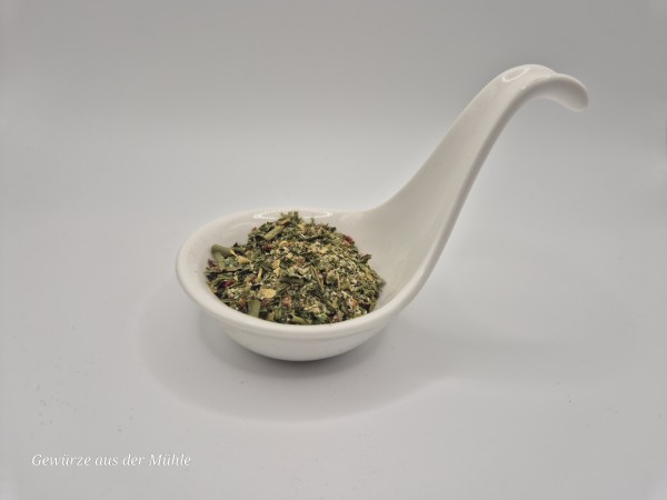 Zutaten: Petersilie, Lauch, Zwiebeln, Salz, Knoblauch, Schnittlauch, Sellerie, Senf, Paprika, Fenchel, Liebstöckel