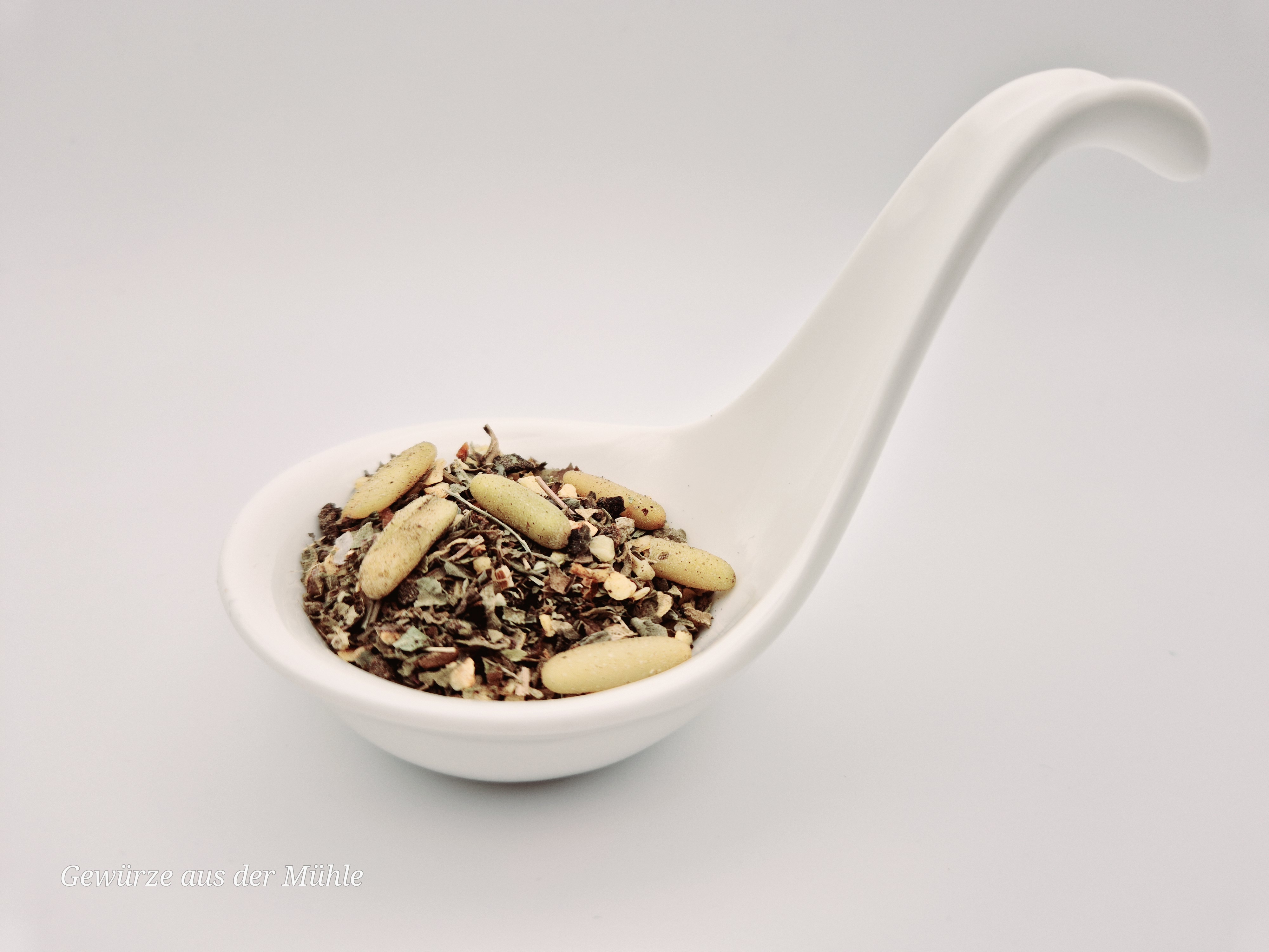 Verwendung: 3EL Gewürze mit 1 EL geriebenem Parmesan, 4EL Öl, 4EL Wasser aufrühren.